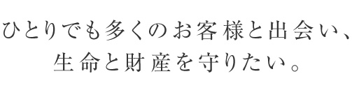 少しでもたくさんのお客様とお会いして、いつか迫ってくる危機に対してしっかりと対策を施すことにより、お客様の生命と財産を守りたいと考えています。